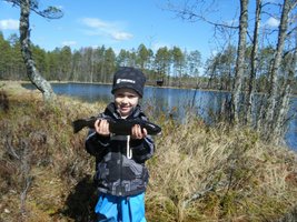 Efter tävlingen tar vi lite arbete vid tjärn. Inge betungande